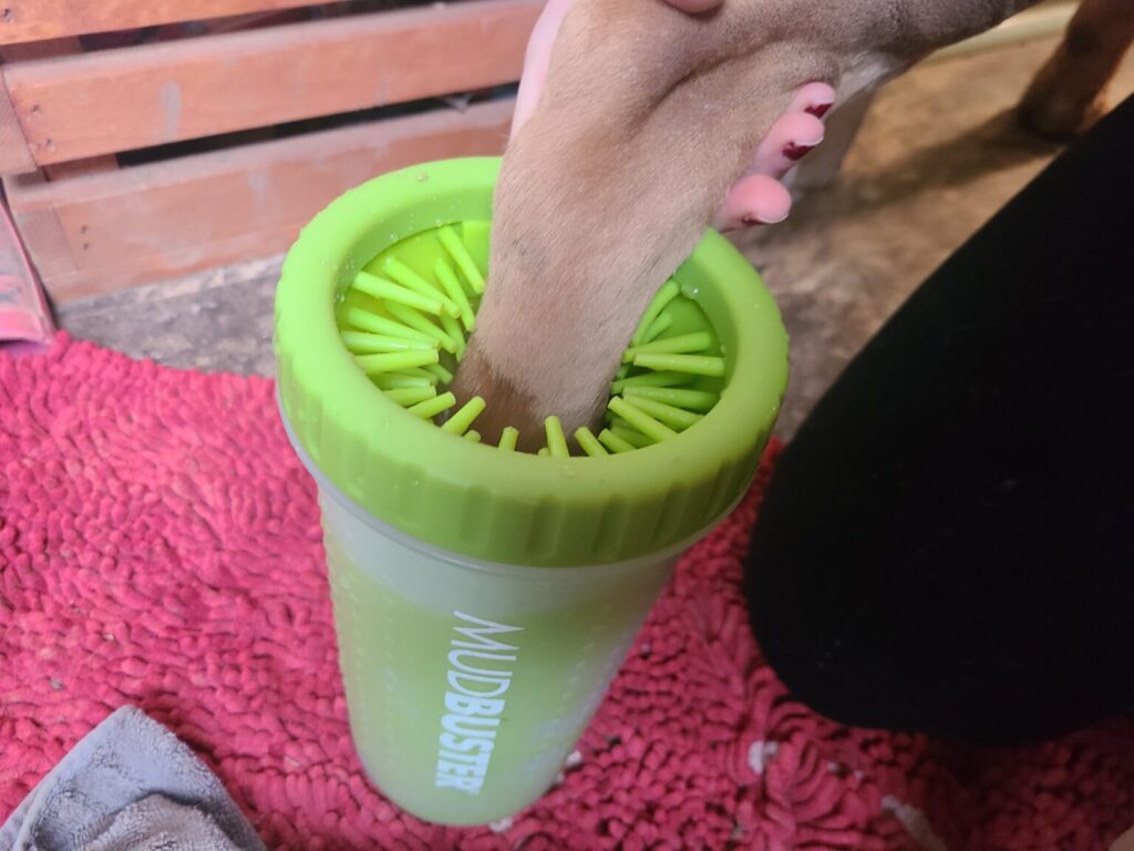 Scrub those muddy paws in seconds. The Paw Cleaner spins, swirls, and saves your floors because even good boys track bad decision